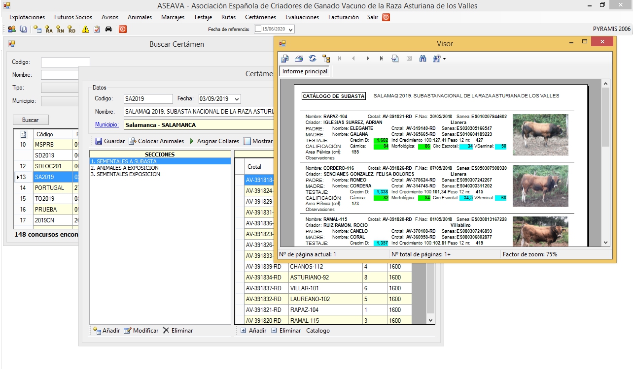 - Generación de múltiples informes predefinidos (hojas de control de rendimiento, censos, reproductoras por provincias,...)